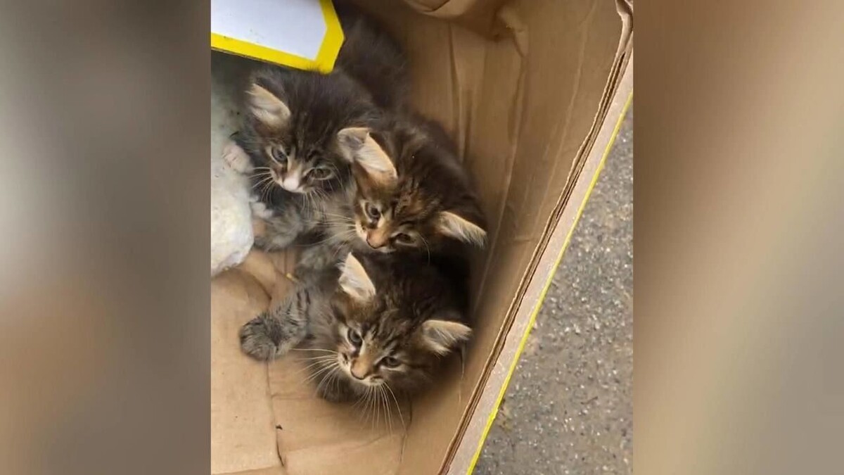 Водитель мусоровоза нашел коробку с выброшенными котятами в Петербурге