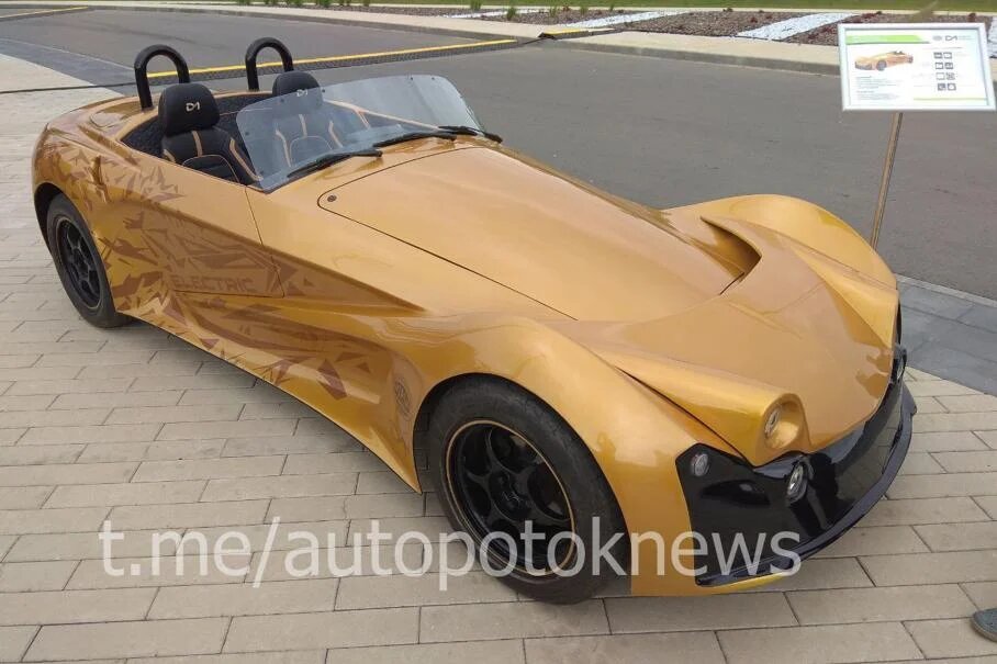 На выставке вооружений Milex в Минске показали необычный электромобиль — двухместный Electro Roadster в золотом цвете. Разбираемся, зачем его создали и почему он останется экспериментальной моделью. Экзотичный родстер разработали в Объединенном институте машиностроения НАН Беларуси. Это уже вторая версия проекта: первую представили в 2022 году, а теперь машину доработали: 🔹 Новый кузов (теперь в золотом цвете)