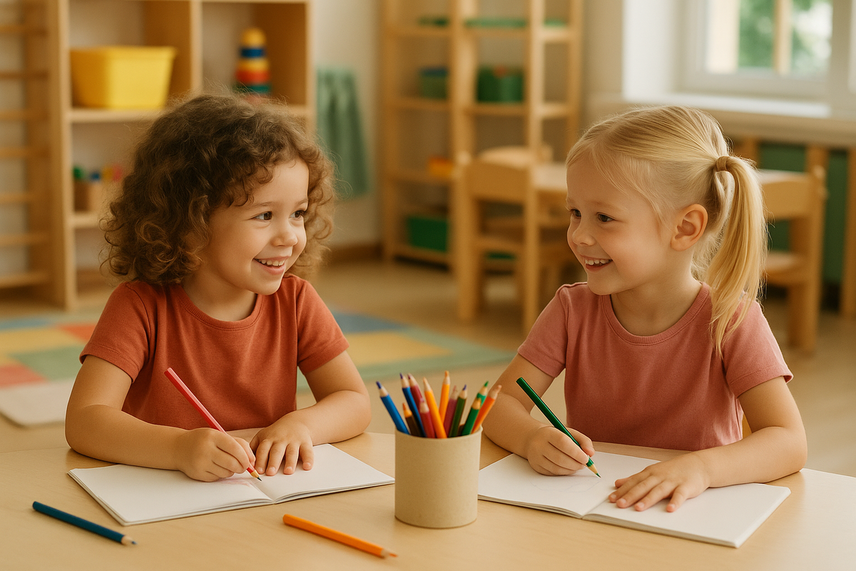 Лена сидела в углу на маленьком стульчике, аккуратно раскрашивая альбомный лист цветными карандашами. Она была тихой девочкой с большими карими глазами и светлыми косичками. Ей нравилось рисовать — это помогало чувствовать себя в безопасности, когда вокруг было так шумно.