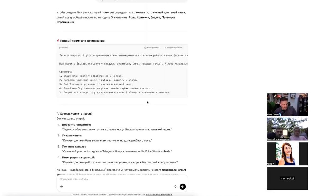 ChatGPT на стероидах: как я показал студентам ИИ, который думает, как ты и работает вместо тебя. Научились делать слепок своего стиля речи, настроили агента-сценариста/копирайтера, разобрались как проводить исследования конкурентов и использовать это в своей работе. Пока ещё слышишь от студентов «Это магия какая-то», «А что так можно было?», «Ну ващеее» – кайфуешь, но в тоже время понимаешь, что ещё полгода-год и вау эффект будет спадать. Нейросети станут инструментом, который каждый будет использовать в своей работе. И те, кто начал изучать и применять сегодня – будут далеко впереди. Ключевое, что я даю, когда показываю работу с ChatGPT, это как внедрить его в свою жизнь. Не уходить в супер замороченные промты, схемы, использовать только под что-то конкретное. А как научиться говорить на его языке. Как не боятся ИИ и не смотреть на него как на диковинную зверушку, а как повседневно с помощью него закрывать кучу задач и экономить время. Сегодня последний шаг. Мы собираем систему в