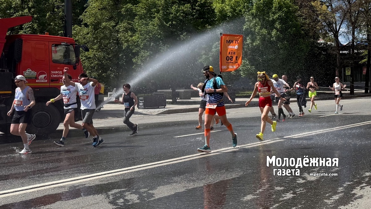 Вчера в историческом центре столицы в пятый раз прошло грандиозное спортивное мероприятие — праздник спорта, единства и здорового образа жизни. В 2025 году в нем приняли участие более 4 тысяч уфимцев, которые смогли выбрать для себя одну из четырех дистанций, предложенных организаторами на выбор: 1 км, 5 км, 10 км и 21,1 км. Стартовали и финишировали участники на площади Салавата Юлаева. А маршруты пролегали по красивейшим местам нашей столицы. На улице Мустая Карима, около входа в Арт-Квадрат, участников поддерживали очаровательные спортивные девушки- чирлидерши. Гремела музыка и у некоторых легкоатлетов даже хватало сил подтанцовывать! А вот на улице Коммунистической, недалеко от здания УУНиТ, стояла поливальная машина и легким фонтаном охлаждала бегущих. Кто-то с удовольствием подбегал поближе, кто не хотел потом бежать мокрым— обходил дождик. Правда, автолюбители, не читающие новостей о перекрытии центра города, были в растерянности. Улица Ленина была перекрыта от Бульвара Ибрагим