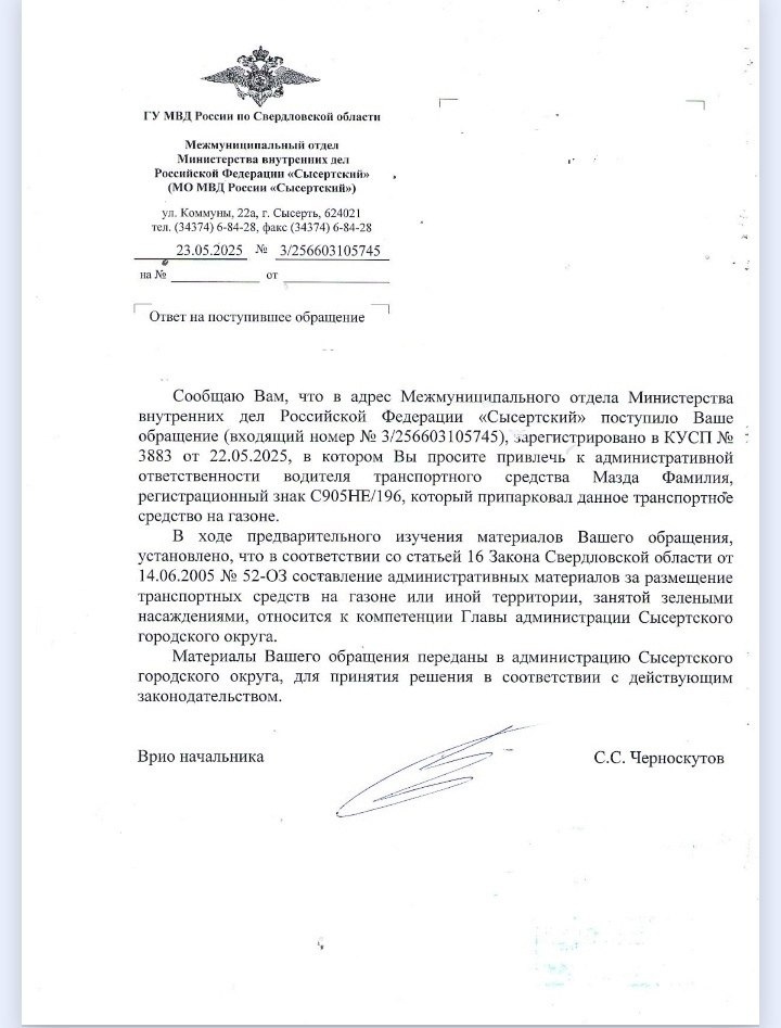 Удивлён. Оказывается парковкой на газоне занимается администрация. Но ответили оперативно. Ждем решение. Кстати если вы машинами вдрызг разбили газон и там перестало что то расти. По определению это место остаётся газоном. Хорошего дня и улыбайтесь. АНОНИМНО Мы в соцсетях: Вконтакте - https://vk.com/p.sysert Телеграмм - https://dzen.ru/id/63f23fa633985037574a7d54 Одноклассники - https://ok.ru/p.sysert Дзен - https://dzen.ru/psysert Подслушано Сысерть №1 Наши проекты: https://vk.com/topic-203954349_49682996