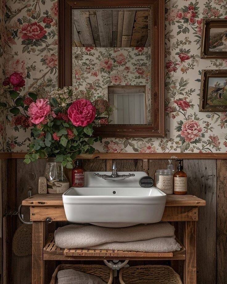 ⦁ Картины и постеры: Сентиментальные изображения, акварели с цветочными мотивами, старинные гравюры. Рамы должны быть потертыми, возможно, с позолотой.