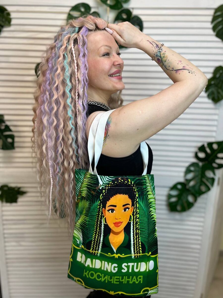 #доипосле #локоныариэль Вручили приз 🏆 за 3-е место! Эксклюзивный шоппер с нашим первым логотипом студии 🤘🏼Такой только у Ольги (и у Майкла Джексона😁) И, конечно, девушка не ушла от нас без прически 🫶🏻 в цветах единорога 🦄, которую мы украсили светящими 🌌 в темноте сенегальскими косами! ❗️Напоминаем что До Конца Июля дредолоконы Ариэль 7500₽ 🔥🔥🔥 Для записи на акцию 👇 пиши: @Sloweek_scissorshands @katerina_serg #новыйобраз #косичечная #косысг #солнечныйгород #студиябрейдинга #косичкисканекалоном #сг #красивыеволосы #афропрически #косысканекалоном #брейды #единорог #дреды #дредокудри #афрокудри #афролоконы #декосы #цветныеволосы