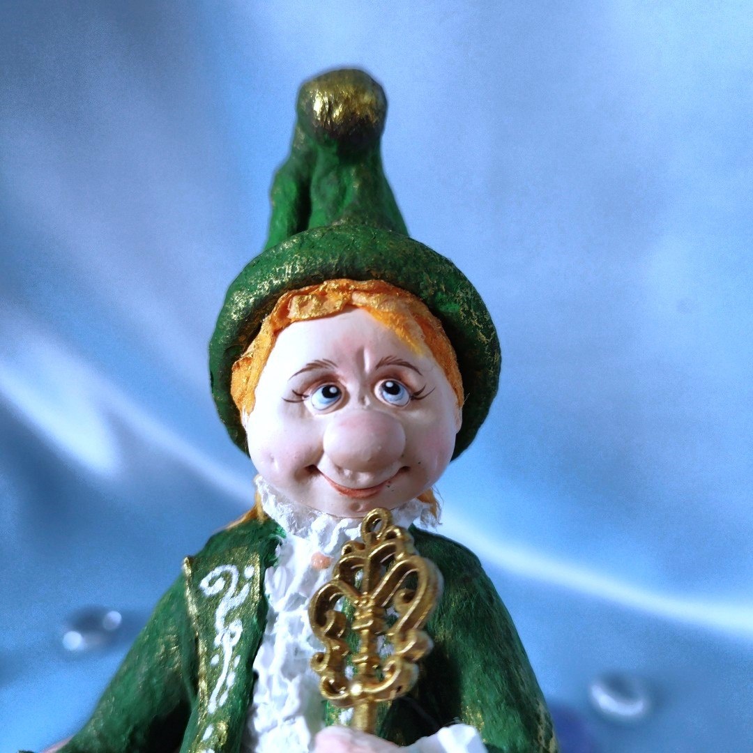 А теперь покажу его поближе. Очень понравилась шапочка в интернете на девочке (новогодний костюм) решила одеть такую же на своего гнома. Получилось красиво, как думаете?