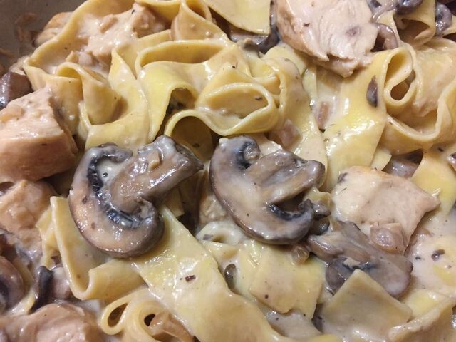 Курица с крем-фрешем Когда я была студенткой по обмену во Франции, моя Это куриная грудка, приготовленная в масле, крем-фрайше и грибах с макаронами. Никто не может приготовить его так, как она, но это блюдо очень близко. Подавайте с французским хлебом или французским чесночным хлебом по желанию. Приятного аппетита! 🍴 Количество: От 4 до 6 порций Ингредиенты ✅ 6 половинок куриной грудки без кожи и костей ✅ ¼ стакана белого вина ✅ соль и перец по вкусу ✅ 1 (250 гр) упаковка макарон, на ваш выбор ✅ 1 большая белая луковица, измельченная ✅ 1 столовая ложка измельченного чеснока ✅ 2 (250 гр) упаковки нарезанных свежих грибов ✅ 2 стакана фруктового крема ✅ ½ стакана тертого сыра пармезан для начинки ✅ 3 столовые ложки сметаны Инструкция приготовления 1. В большой сковороде обжарьте куриные грудки в масле на среднем огне. Когда грудки подрумянятся, добавьте белое вино, соль и перец по вкусу. Тушите 15-20 минут, или пока курица не прожарится насквозь, а соки не станут прозрачными. 2.