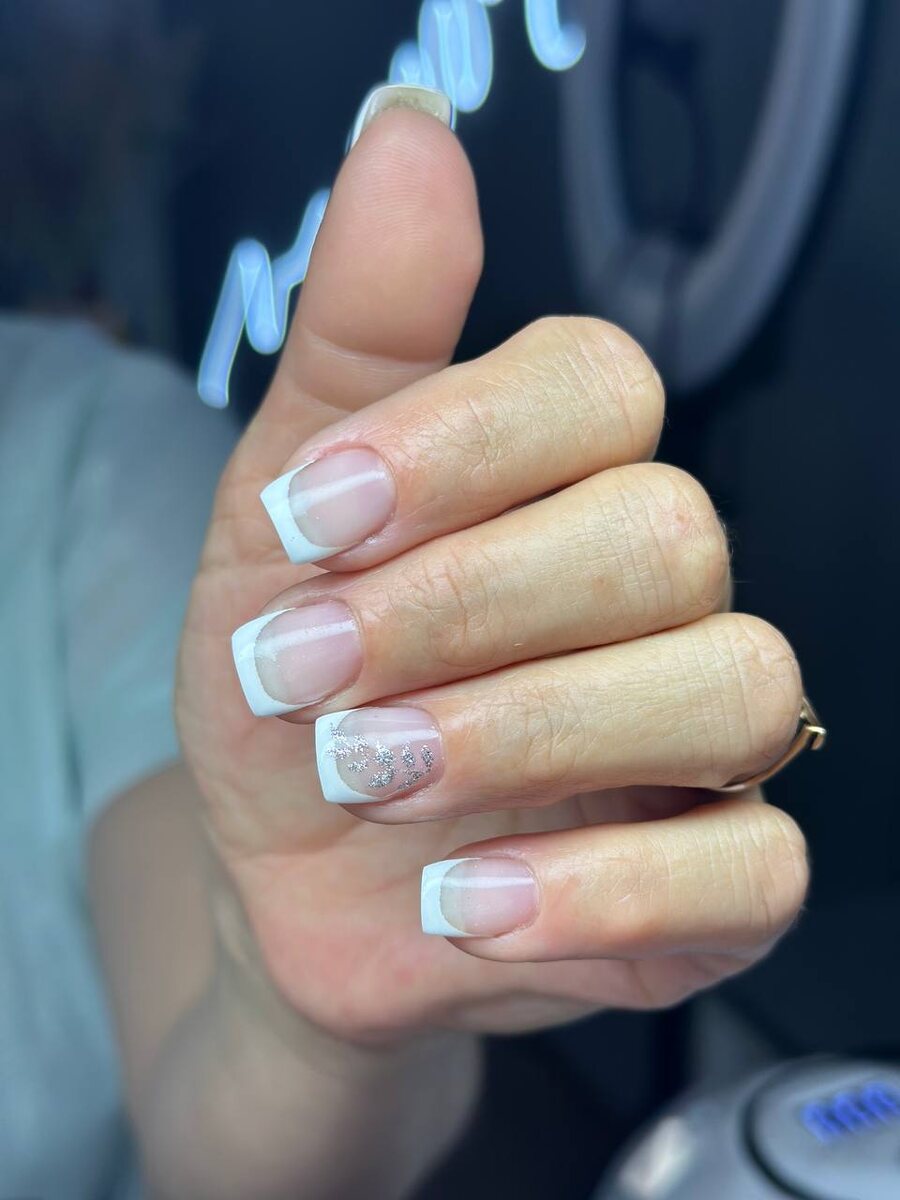 Сегодня у меня была новая гостья. Прекрасный, добрый человечек. 🩷 На хорошем ваебе я даже забыла сделать фото «До»🤦♀️ Покрытия не было. Кутикула была большая, налипшая, местами лопнувшая, местами сухая, поэтому сразу сделать идеальный маникюр не получается. Но с каждой коррекцией маникюр будет выглядеть еще лучше. 🖤Выполнила комбинированный маникюр; 🖤Нарастила уголки, где-то длину ногтей; 🖤Укрепила гелем; 🖤На дизайн моя гостья выбрала френч, а я дополнила серебряной веточкой. Вышло мило🌸 Хорошего дня!