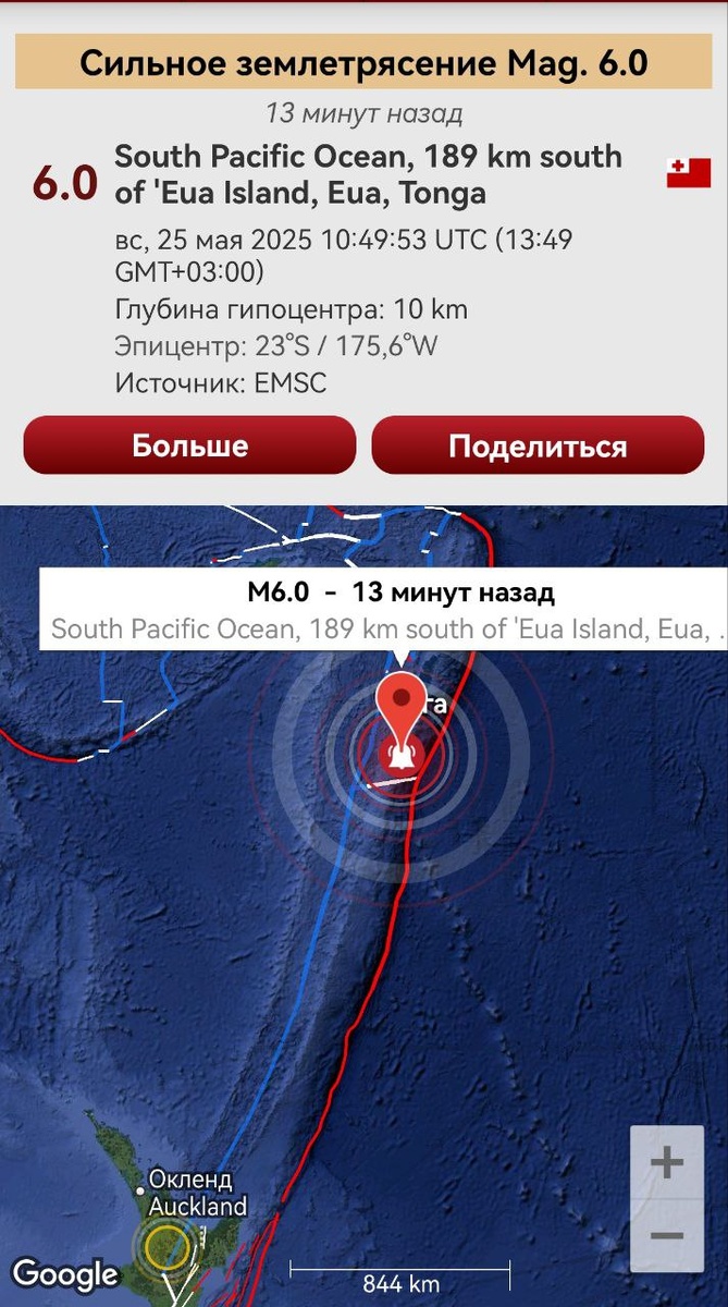 В ответ на пост Согласно прогнозу от 18 мая произошло землетрясение М6.0 в районе Тонги ===== According to the forecast of May 18, the M6.0 earthquake occurred in the Tonga region.