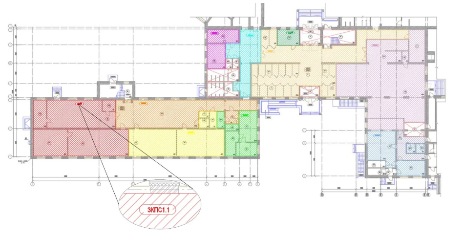 – одна ЗКПС должна включать в себя не более пяти смежных и изолированных помещений, расположенных на одном этаже объекта и в одном пожарном отсеке, при этом изолированные помещения должны иметь выход в общий коридор, холл, вестибюль и т.п., а их общая площадь не должна превышать 500 м2.