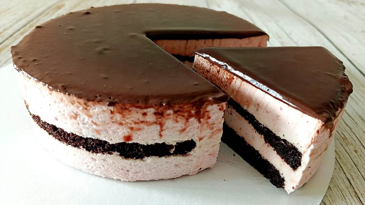 Клубничное суфле и шоколадные коржи с шоколадной глазури делают этот торт настоящим шедевром. Это настолько вкусно, что одной порции будет мало.