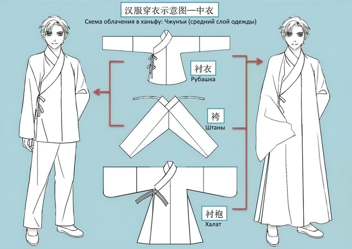 中衣 (zhōng yī) — это важный элемент традиционного китайского костюма, выполняющий как функциональную, так и эстетическую роль. Покрой: Простой, без вычурности. Часто напоминает прямую тунику с запахом.