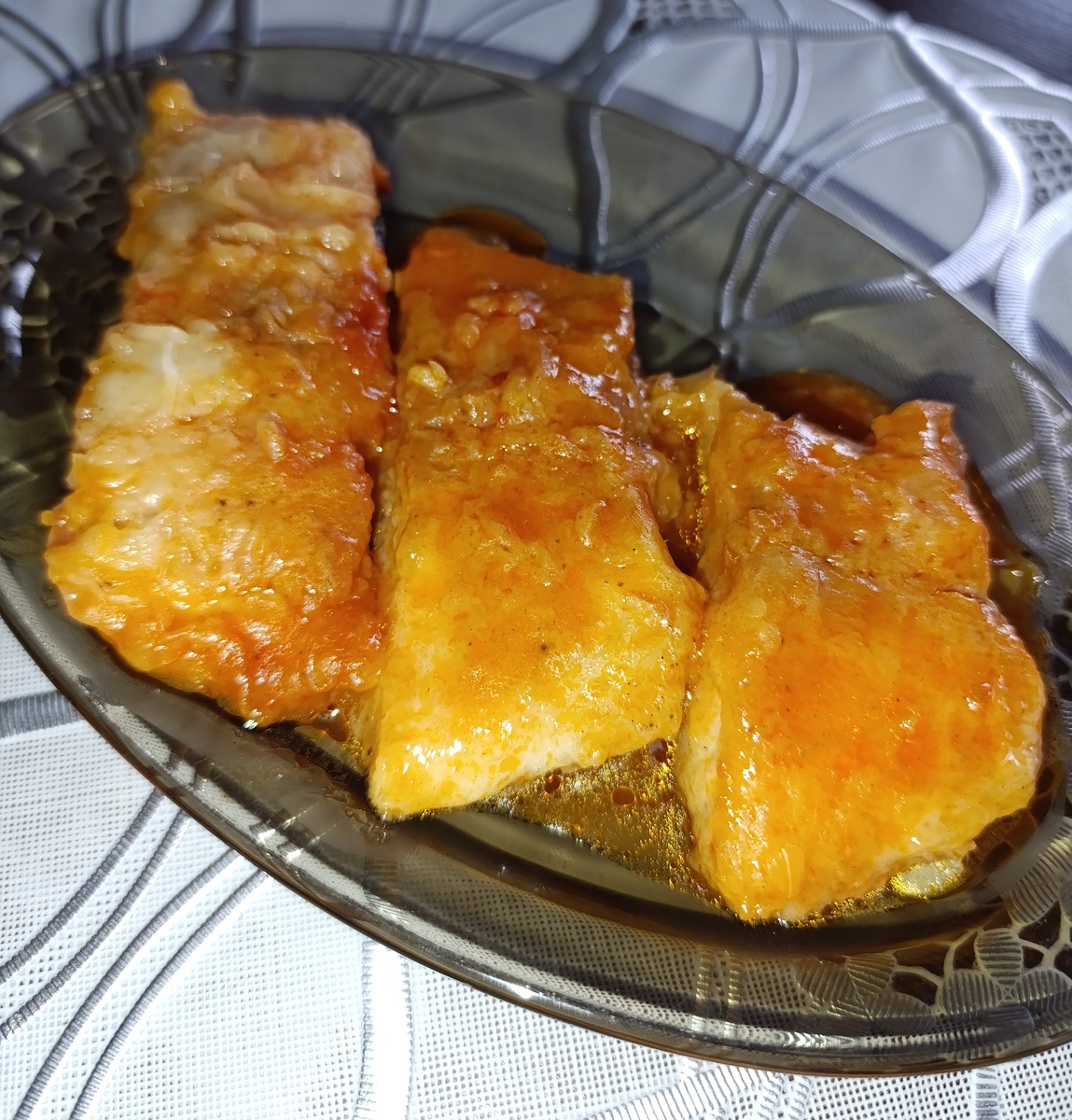 Про такую рыбу говорят, что ее можно есть губами. Невероятно нежная.... Ингредиенты: рыба 400 гр лук 1 шт перец болгарский 1 шт соль 0,5 ч л перец молотый 0,25 ч л томатная паста 1 ст л сахар 0,5 ч л чеснок 3 чубчика Для приготовления данного блюда подойдет любая рыба с наименьшим количеством костей (не речная). Если Вы будете брать филе, то учтите, что будет очень нежная рыбка и переворачивать, укладывать ее нужно аккуратно, чтобы не развалилась. Итак, рыбу моем, очищаем, нарезаем, соли и перчим. Обваливаем в муке и слегка обжариваем на среднем огне в растительном масле. Лук очищаем, нарезаем кубиком, обжариваем. Перец нарезаем кубиком и добавляем к луку, обжариваем. Я взяла замороженный. На овощную подушку выкладываем нашу обжаренную рыбку. Томатную пасту разводим в 300 гр воды и заливаем рыбку сверху. Добавляем сахар и измельченный чеснок. Тушим 15-20 минут. Приятного аппетита!