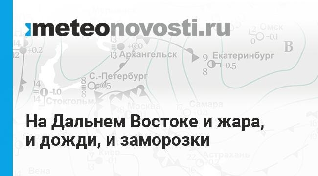 Накануне на Дальнем Востоке дожди прошли в западной половине Приморского края, до сильного с грозой, а в Камчатском крае ветер достигал 22 м/с. На большей части полуострова, кроме отдельных районов, прошли различные дожди. Температура воздуха в южных районах была ниже нормы. В Хабаровском крае в ночь на субботу наблюдались заморозки до -2,5 градуса. Дневная температура повышалась только до 17..22 градусов. В то же время в Забайкалье и на западе Амурской области воздух прогревался до 26..28 градусов. Тепло вырвалось и в центральные районы Якутии. А на западе Якутии на метеостанции Юбилейная отмечен рекорд максимальной температуры, 20,2 градуса, тогда как предыдущий рекорд 15,7 градуса был в прошлом году. Потепление в начале следующей недели охватит большинство районов Амурской области, Хабаровский край и Приморье. На северо-западе Амурской области температура может повыситься до 30 градусов. На юге Хабаровского края потеплеет градуса на 2. В Приморском к... Перейти на сайт Прогноз п