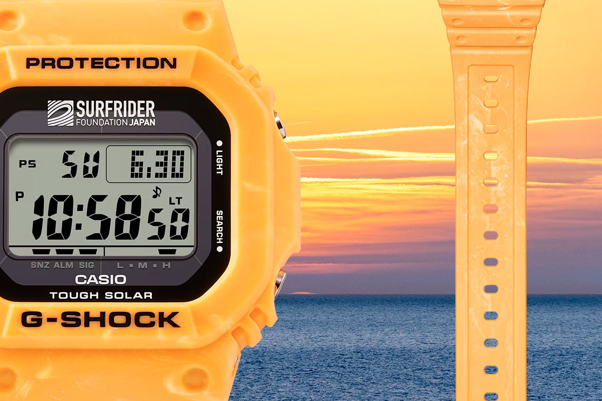 Лето еще не наступило, а касиовцы уже делятся анонсом будущих новинок июня, среди которых будут G-5600SFJ-9. Это уже вторая по счету модель сотрудничества с обществом защиты морской фауны и фанатов водных видов спорта под названием Surfrider Foundation (сокращенно SF). О лимитированной сущности модели догадаться несложно, учитывая яркий дизайн, не очень типичный для серии G-5600. Ребята из SF серьезно относятся к проблеме загрязнения морей и океанов, да и сами CASIO нередко обращают внимание на необходимость поддержания чистоты в естественной среде обитания «братьев наших меньших» — G-5600SFJ как раз таки и продвигают эти идеи. Surfrider Foundation — некоммерческая организация из США, основанная серферами-любителями и отвечающая за защиту водных ресурсов нашей планеты от загрязнений. Океаны представляют собой богатейшие источники природных богатств, и при этом сильно страдают от пластиковых отходов, тяжелых металлов и других продуктов жизнедеятельности человека. С 1984 года фонд занима