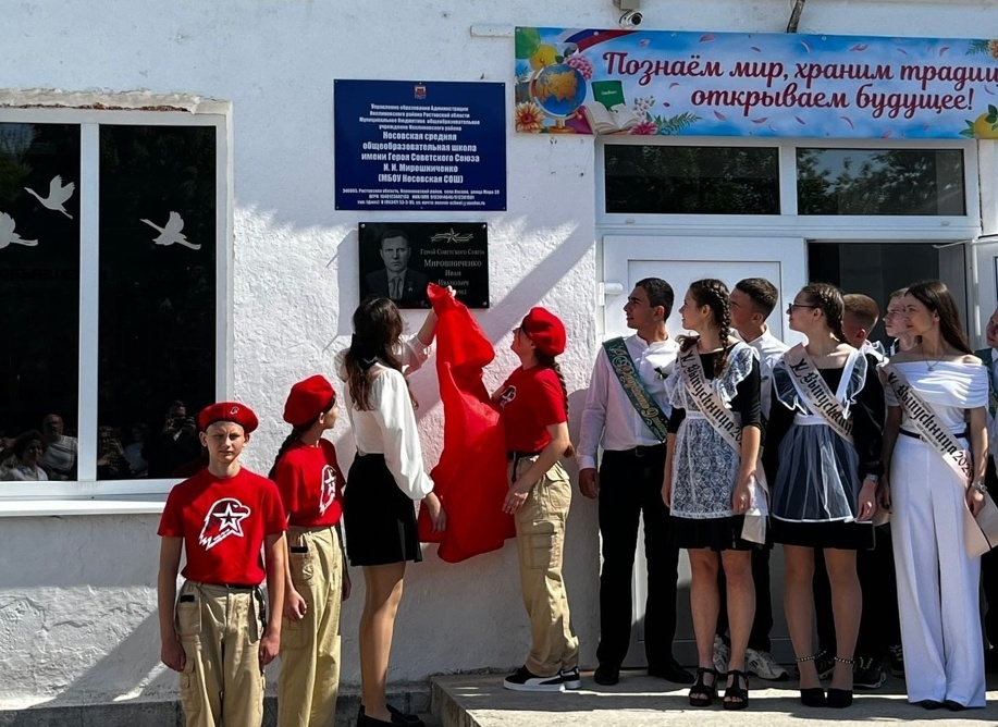 24 мая прозвучал Последний звонок 2024-2025 учебного года и в Носовской средней школе. Ее выпускников поздравили с окончанием учебы, пожелали успешной сдачи выпускных экзаменов заместитель начальника управления образования Неклиновского района Ю.В. Саврасова, директор школы В.В. Пономарев, глава администрации Носовского поселения А.В. Татаринцев. Торжественный моментом праздника стало открытие мемориальной доски в честь земляка, участника Великой Отечественной войны, Героя Советского Союза Ивана Ивановича Мирошниченко, имя которого недавно присвоено этому образовательному учреждению. Пресс-центр Носовской средней школы.