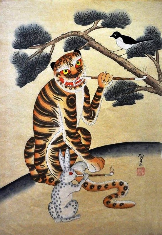 Многие корейские сказки начинаются не со знакомого нам «жили-были», а с периода, «когда курили тигры». Это выражение, которое даже сегодня можно услышать в повседневной речи корейцев, отсылает нас на неопределённое, но давно ушедшее время. Существуют даже исследования на эту тему, и распространено мнение, что появление табака связано с Имджинской войной, а следовательно, курить тигры начали не раньше 1592 года. 🔥 МШО - имейте ввиду