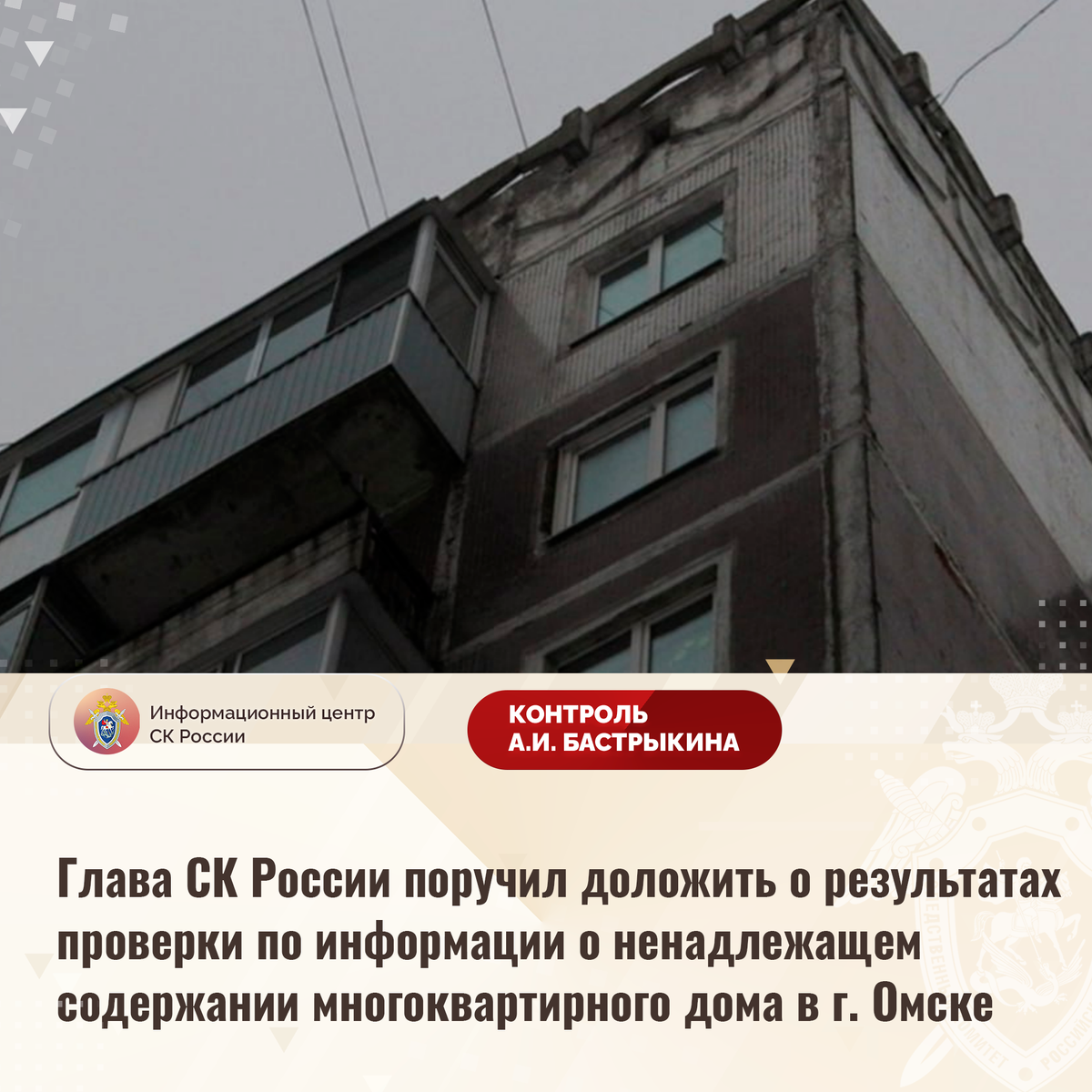 Глава СК России поручил доложить о результатах проверки по информации о ненадлежащем содержании многоквартирного дома в г. Омске