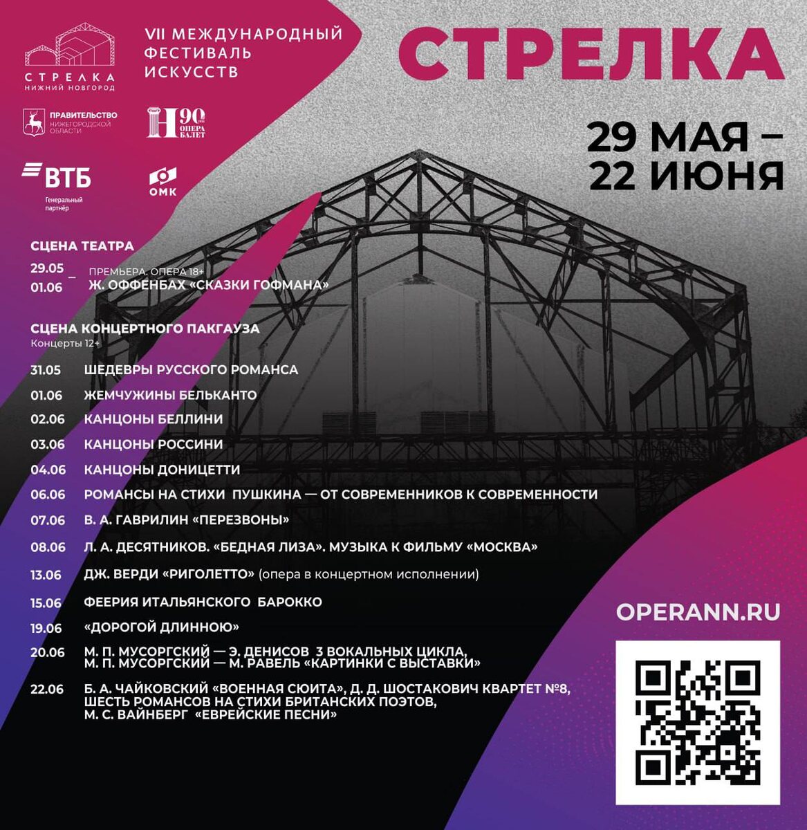 С 29 мая по 22 июня в Нижнем Новгороде пройдет VII Международный фестиваль искусств «Стрелка». Цель проекта— привлечь внимание молодежи, жителей и гостей города к классической музыке и ее редко исполняемым шедеврам. Проект традиционно объединяет лучших российских и зарубежных музыкантов. В фестивале уже принимали участие звезды мировой оперной сцены: Венера Гимадиева, Надежда Павлова, Мария Баракова, Иван Гынгазов, Константин Сучков и многие другие. За семь лет фестиваль искусств «Стрелка» стал центром притяжения ценителей классической музыки. В этом году он откроется премьерой оперы «Сказки Гофмана» на музыку Жака Оффенбаха в постановке Елизаветы Мороз. Спектакль пройдет в Нижегородском театре оперы и балета имени А.С. Пушкина 29, 30, 31 мая и 1 июня. Фестиваль продолжится рядом концертов на сцене КЗ «Пакгауз». Их программа охватит произведения разных эпох — от барокко до музыки XXI века. #яместный