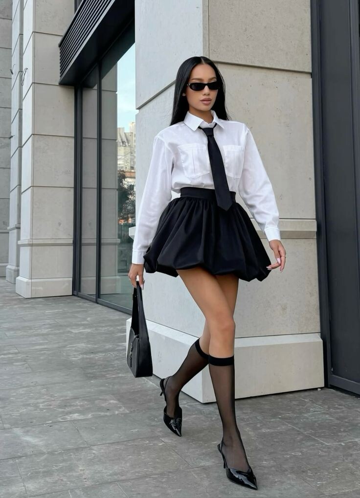 В 2025 году галстук вполне может заменить колье или чокер, ведь модники предлагают завязывать его в виде банта на шее. Регулировать размер и пышность банта можно с помощью ширины галстука — чем он уже, тем аккуратнее получится итог.