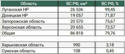 Процентное соотношение находящийся под контролем ВС РФ территорий областей и республик в зоне проведения Специальной Военной Операции к 25 мая 2025.