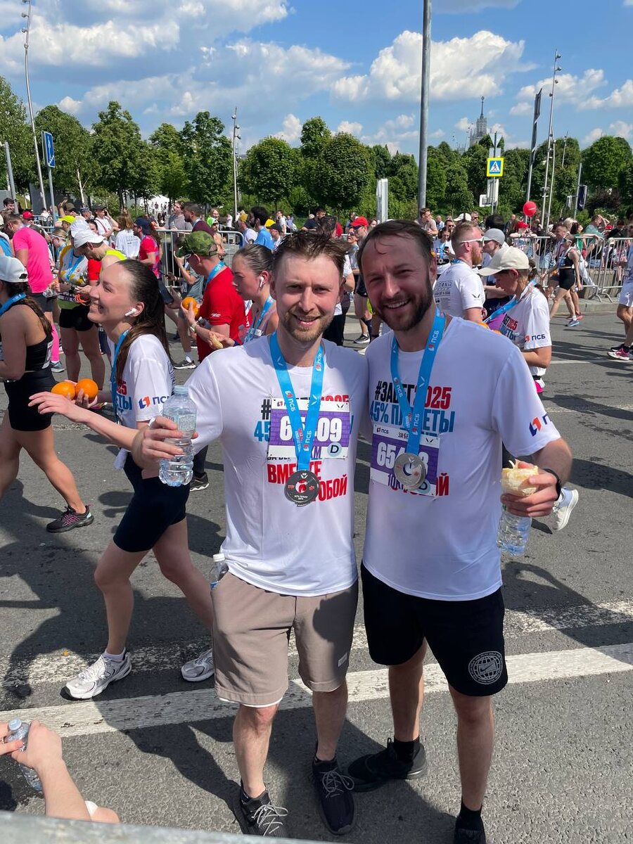 Наш 1й марафон. Пробежали 10 км. Как же много всего хранит в себе тело. Когда в нем легкость, многие трудности уже не такие трудные. Преодолевая в теле, мы преодолеваем в психике, в эмоциональном состоянии. Развивается Воля - бессмертное качество Души. Целый день внутри легкость бытия😃