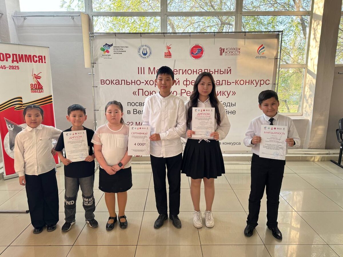 ΠΊΠΎΠ»Π»Π΅ΠΊΡΠΈΠ²ΠΎΠ² Β«ΠΠΎΡ ΠΌΠΎΡ Π Π΅ΡΠΏΡΠ±Π»ΠΈΠΊΡΒ», ΠΏΠΎΡΠ²ΡΡΡΠ½Π½ΡΠΉ 80-Π»Π΅ΡΠΈΡ ΠΠΎΠ±Π΅Π΄Ρ Π² ΠΠ΅Π»ΠΈΠΊΠΎΠΉ ΠΡΠ΅ΡΠ΅ΡΡΠ²Π΅Π½Π½ΠΎΠΉ Π²ΠΎΠΉΠ½Π΅. πΠ£ΡΠ°ΡΠΈΠ΅ΡΡ ΠΊΠ»Π°ΡΡΠ° ΠΏΡΠ΅ΠΏΠΎΠ΄Π°Π²Π°ΡΠ΅Π»Ρ Π ΠΈΠ½ΡΠΈΠ½ΠΎΠ²Π° ΠΡΡΠΈ ΠΠ°Π±Π°Π΅Π²ΠΈΡΠ°, ΠΊΠΎΠ½ΡΠ΅ΡΡΠΌΠ΅ΠΉΡΡΠ΅Ρ ΠΡΠΎΡΠΎΠ² ΠΠ°Π»ΡΠ°Π½ ΠΠ½Π½ΠΎΠΊΠ΅Π½ΡΡΠ΅Π²ΠΈΡ: 1) Π²ΠΎΠΊΠ°Π»ΡΠ½ΡΠΉ Π°Π½ΡΠ°ΠΌΠ±Π»Ρ Β«Π£Π»Π°Π°Π»Π·Π°ΠΉΒ» Π»Π°ΡΡΠ΅Π°Ρ ll ΡΡΠ΅ΠΏΠ΅Π½ΠΈ. Β«ΠΠ°ΡΠΎΠ΄Π½ΡΠΉ Π°Π½ΡΠ°ΠΌΠ±Π»ΡΒ» 2) Π΄ΡΡΡ Π‘ΠΈΠΌΠ°Π½ΠΎΠ²ΠΈΡ ΠΡΡΡΡ ΠΈ ΠΠ±ΠΎΡΠΎΠ² ΠΠ°Π½ΠΈΠΈΠ» Π΄ΠΈΠΏΠ»ΠΎΠΌ lV ΡΡΠ΅ΠΏΠ΅Π½ΠΈ. Β«ΠΠ°ΡΠΎΠ΄Π½ΡΠΉ Π°Π½ΡΠ°ΠΌΠ±Π»ΡΒ» πΠ£ΡΠ°ΡΠΈΠ΅ΡΡ ΠΊΠ»Π°ΡΡΠ° ΠΏΡΠ΅ΠΏΠΎΠ΄Π°Π²Π°ΡΠ΅Π»Ρ ΠΠΈΡ