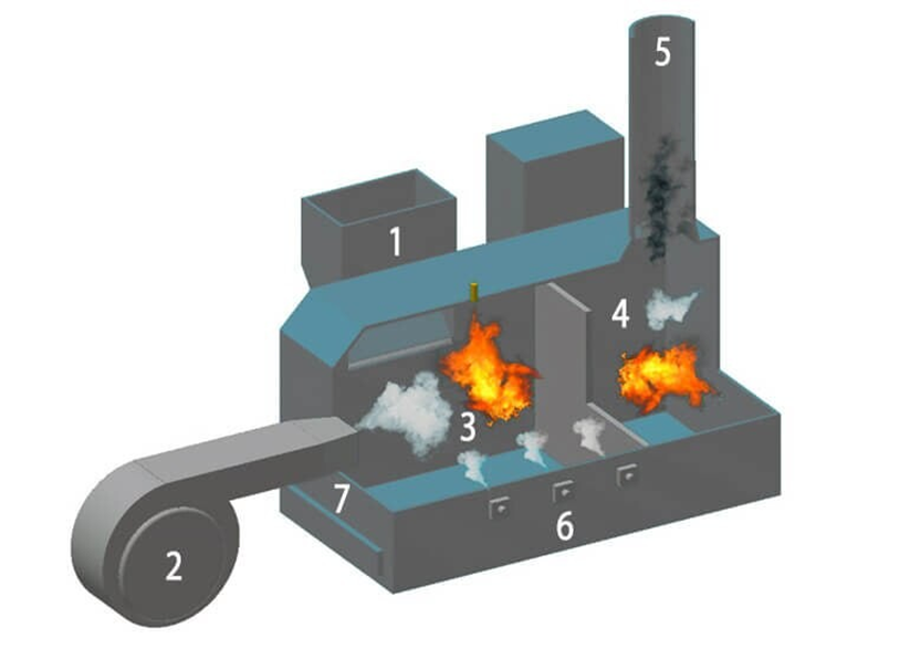 Упрощённая схема инсинератора представлена на картинке ниже.