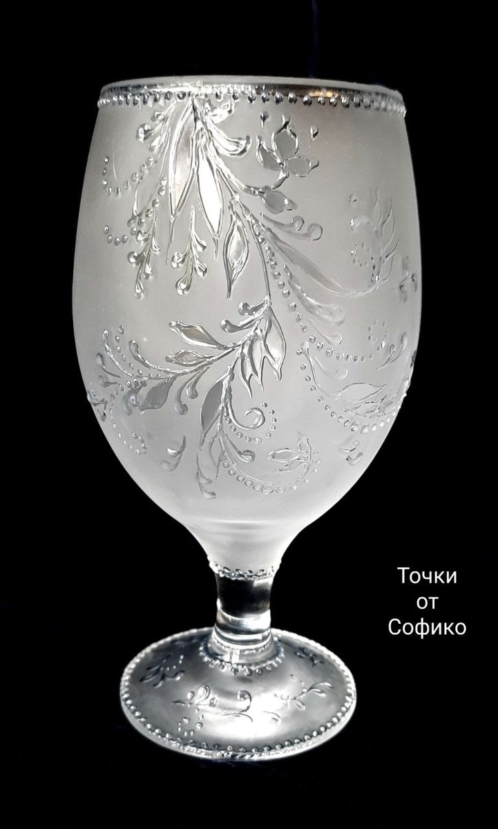 Доброго всем дня! Вот что получилось в результате вчерашнего творчества)) Декоративный бокал. Изящная ненавязчивая роспись прозрачным акрилом по матовой поверхности стекла. Бокал украсит любой интерьер, можно использовать как небольшую вазочку для маленьких букетов или же для хранения макияжных кистей и других мелочей, которых у нас, девушек, всегда в избытке))) Стекло, матирование, роспись акрилом. Высота 16 см, диаметр в самой широкой части 8,5 см. Объем 400 мл. #декоративныйбокал #хранениемакияжныхкистей #точечнаяроспись #pointtopoint #точкиотсофико