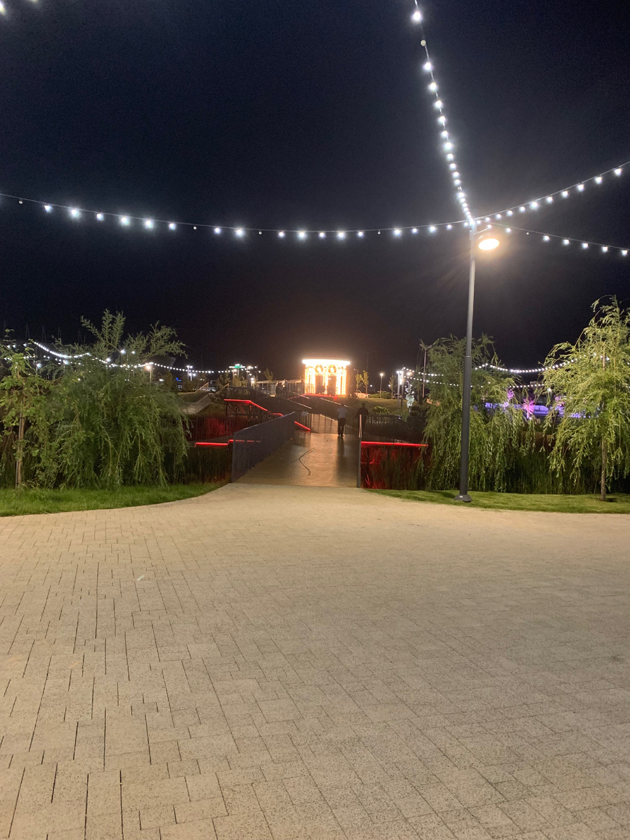 Нам посчастливилось посетить парк в вечернее время, и мы были приятно удивлены! Атмосфера действительно завораживает благодаря обилию лампочек, создающих уютное и праздничное настроение. Прогулка по освещенным аллеям доставила огромное удовольствие.