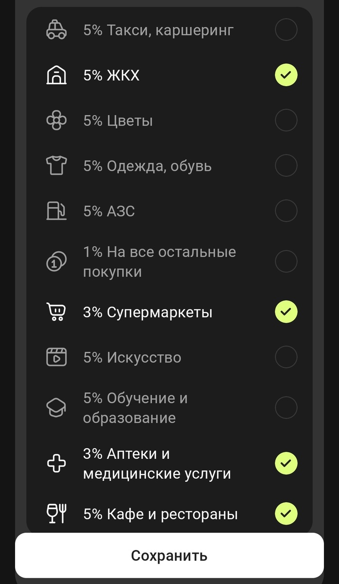 У ОТП всё стабильно хорошо с категориями. Предварительно для себя наметила те 4 категории , которые на скрине , но выбирать буду, когда будет доступен выбор уже во всех банках. Но в целом ОТП для меня один из лучших банков для трат. Если вдруг у вас до сих пор нет карты этого банка, оставлю свою ссылку, при заказе по ней вы получите 500 рублей. Ждём категории в остальных банках.