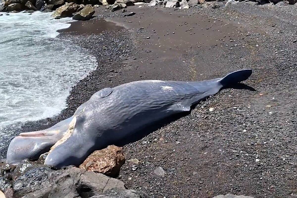 На пляже Тенерифе обнаружен мертвый кашалот: шокирующее фото с места событий
