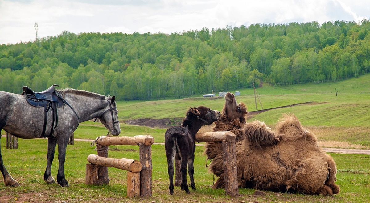 В Туймазинском районе фермер обзаводится экзотическими животными Завести верблюда на своем подворье житель села Старые Туймазы Фанзиль Назмутдинов решил для души. Ну и немножко из интереса — сможет ли экзотическая животинка адаптироваться к нашему климату? Башкирию двугорбая верблюдица, которую назвали Джамиля, восприняла на ура. Так же, как и «прописавшиеся» здесь до него ослик Паскаль и парочка павлинов — самец и самка. Пернатые держатся от млекопитающих обособленно, а те, несмотря на разные весовые категории, на удивление всем сдружились. Джамиля играет с Паскалем и даже взяла его под свою опеку, защищая от наиболее бодливых сельских коров. Не возникло у Назмутдинова проблем и с кормежкой экзотов — они за милую душу уплетают корма, которые хозяин заготавливает для своих одиннадцати лошадей. Правда, теперь ему приходится запасать на зиму около 300 тонн сена — и 100-килограммовый Паскаль, и 800-килограммовая Джамиля отличаются отменным аппетитом. За живностью Назмутдиновы ухаживают вс