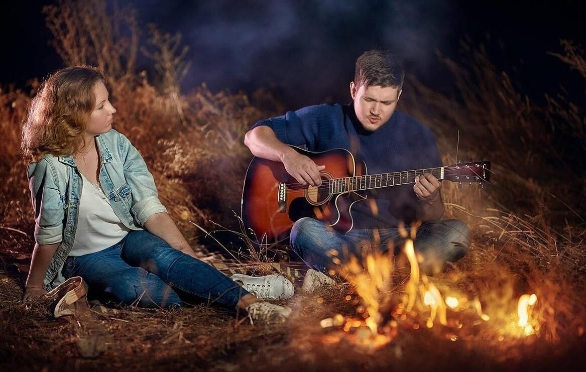 Лена замечает, что Сергей, оказывается, красиво играет на гитаре .