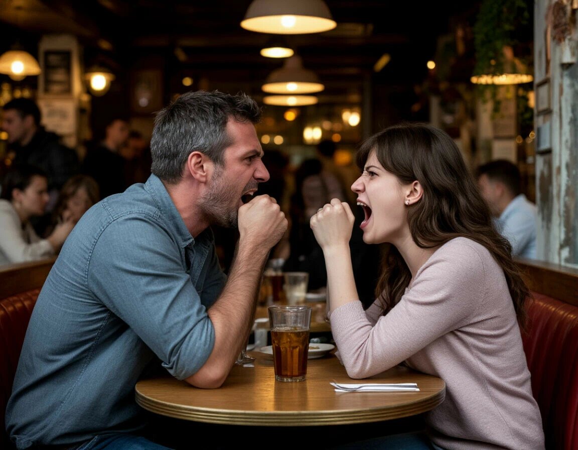 Когда до женщины дошло, что на свидание втроем пришла НАСТОЯЩАЯ ЖЕНА, «подставная» притухла и сидела тише воды, ниже травы. А посетители кафе наблюдали сцену, когда маленькая женщина (меньше 150 см) орет на возвышающегося над ней 2-метрового лба.