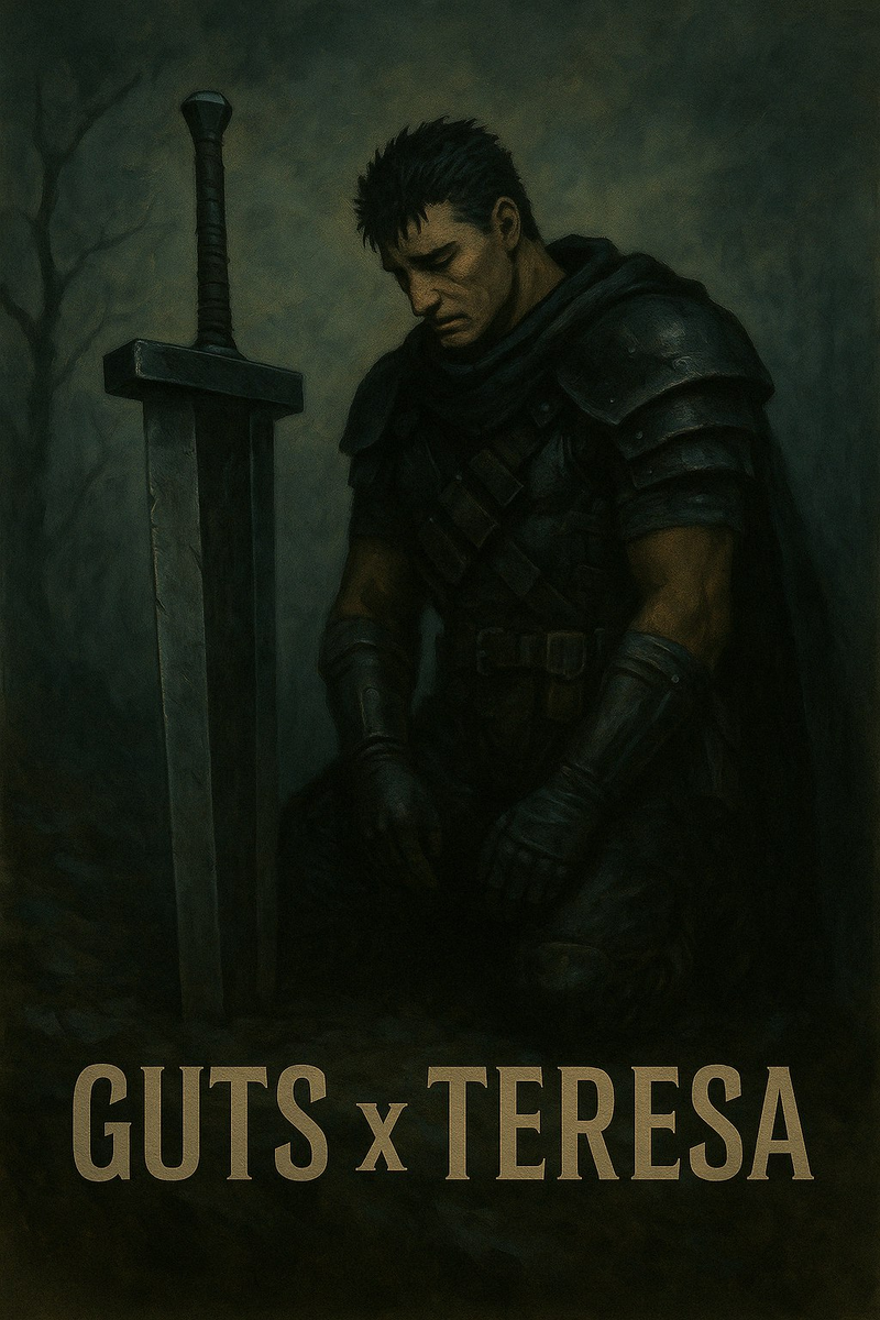 Пролог: Рывок сквозь бездну Когда Гатс последний раз прорезал Эфирным Клыком плоть очередного демона в Бездне, он не знал, что на этот раз удар прорвёт не только материю, но и саму ткань времени и пространства. Внезапно его охватила чернильная темнота, наполненная голосами из чужих миров, злобными шёпотами, эхом страданий и воспоминаниями, которые никогда не были его. Боль прошла по нервам, как ледяной поток, а затем — пустота. Он очнулся. Холодный ветер хлестал лицо. Он стоял на вершине холма, откуда открывался мрачный, бесплодный ландшафт. На горизонте пылало золотое древо, отбрасывающее призрачное сияние на земли, изрытые чудовищами и трагедиями. Земля была изранена, как и он сам. Здесь не было магии, но воздух вибрировал от чего-то иного — от зова, искажённого природы: ёки. И тогда он увидел её. Одинокая фигура в серебристом доспехе, с длинным клинком, идущая через безмолвие. Её глаза сияли холодом. Каждое её движение было отточено, грациозно-опасным. Эта женщина была воплощением с