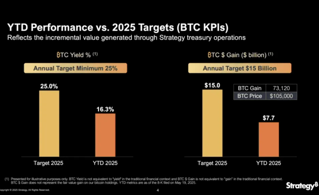 Компания Strategy, чьё имя всё больше напоминает то, чем она на самом деле занимается (архитектурой капитала под биткоин), запускает новый инструмент: At-The-Market программа на $2,1 млрд для размещения своих привилегированных акций Strife ($STRF). Иными словами, Майкл Сэйлор снова нашёл способ превратить бумагу в BTC с ликвидной надстройкой, купоном и амбициями инвестиционного рейтинга. На брифинге для инвесторов CEO Фонг Ли подвёл промежуточные итоги: доходность от биткоин-портфеля Strategy за год — 16,3% (против целевых 25%), прирост — $7,7 млрд. Цель — $15 млрд к концу года. Инструменты Strike и Strife (оба обеспеченные биткоином) превзошли ожидания: STRK с момента запуска вырос на 24%, STRF — на 16% всего за 2 месяца. Для сравнения, прочие рыночные «префы» за этот же период просели на 3–5%. У Strike среднедневной объём торгов $31 млн, у Strife — $23 млн. Это примерно в 60 раз больше ликвидности аналогичных бумаг. Для инструмента второго эшелона — очень неплохо. Ранее Strategy уже
