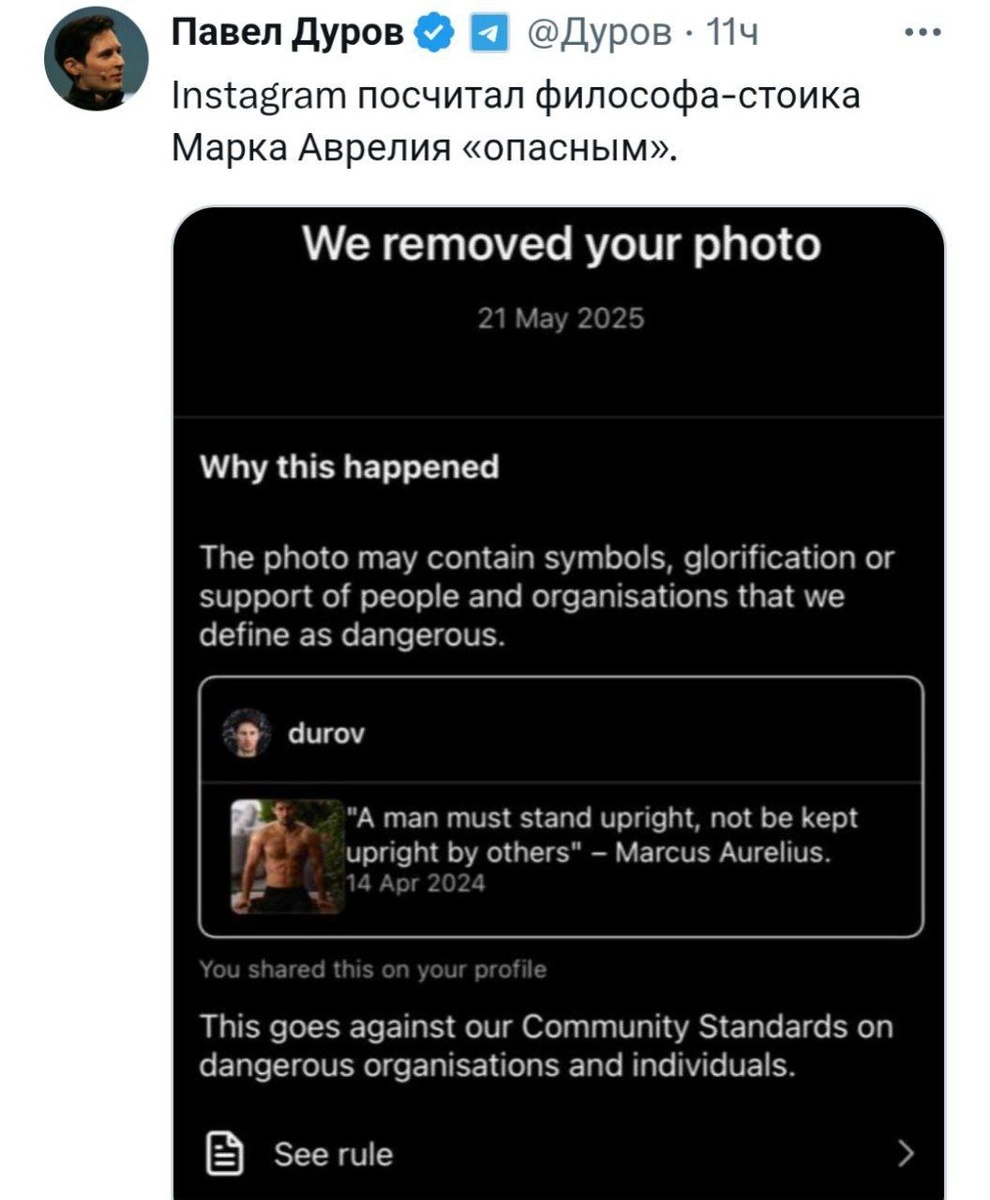 У Павла Дурова тоже удаляют посты в соцсетях. @nemediatema