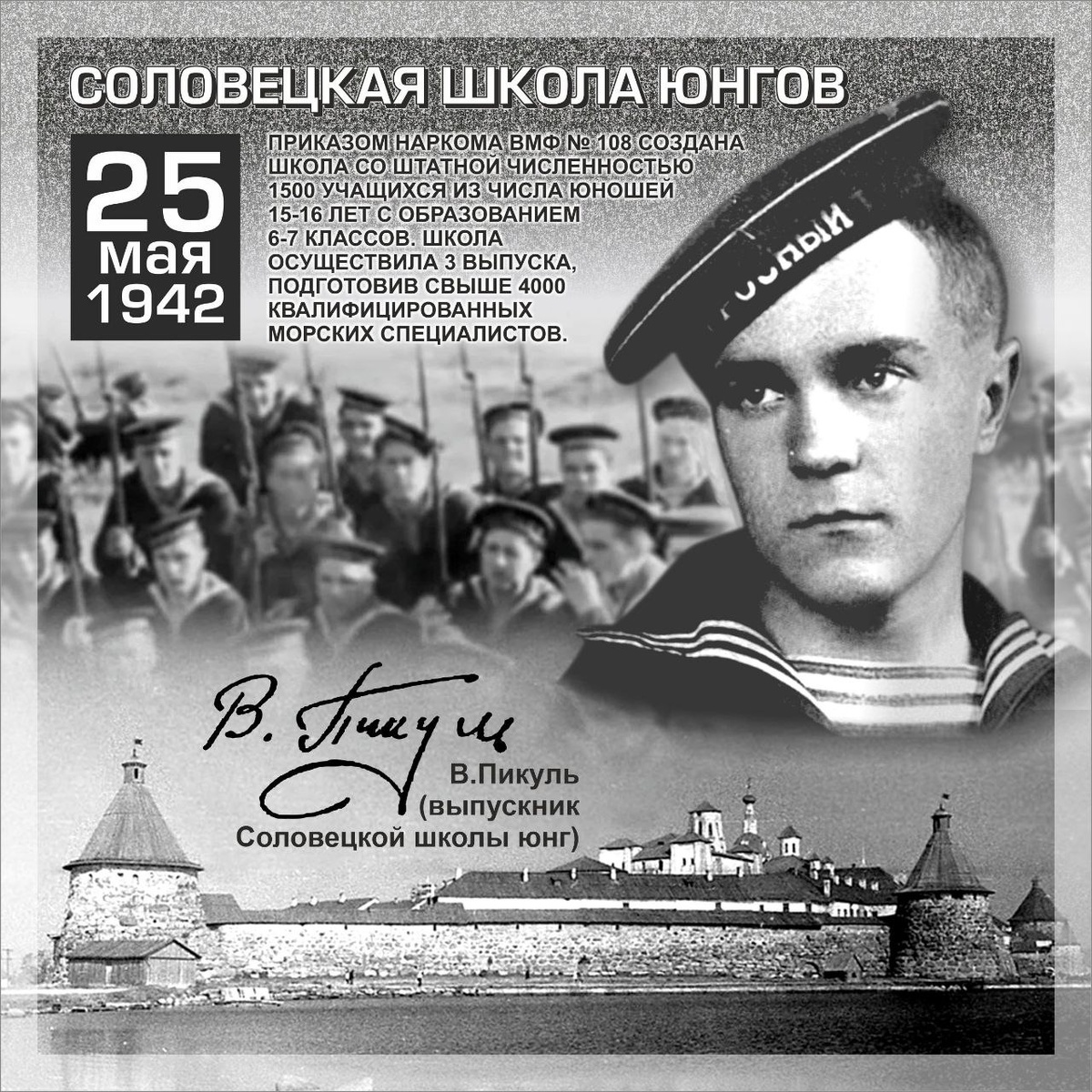 25 мая 1942 г. Приказом наркома была создана "Соловецкая школа юнгов".