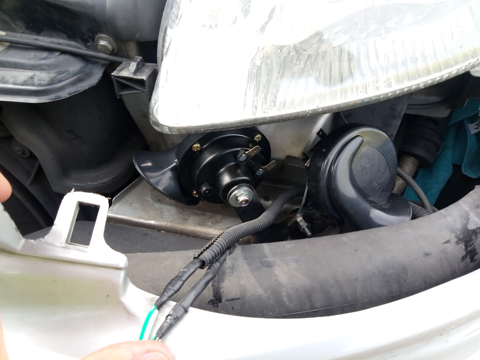 Не привлекал звук штатной "бибики", решено было сменить на двухтоновые фанфары. Заводская кстате тоже дудка, высокочастотная, но она одна.