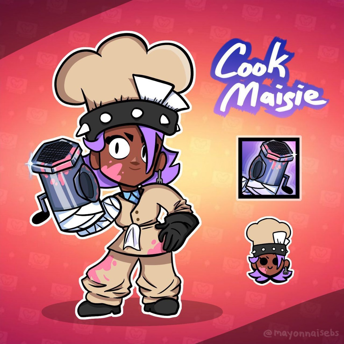 ⚡️Новый скин на Мэйси??? К сожалению это просто концепт, называется "Повар Мэйси", он бы отлично дополнял повара Майка Повар Майк стреляет перцами, а Повар Мэйси стреляла бы сосисочками Мир Supercell. Подписаться