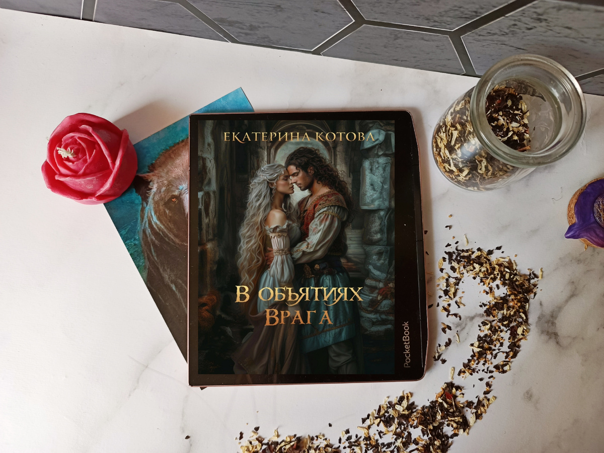 "В объятиях врага" Автор: Екатерина Котова Жанр: эпическое фэнтези, любовное фэнтези. Объём: 210 стр.(электронных) Это история о выборе и цене любви, ибо Камелие (она же Миа) пришлось вставать на распутье ни раз и ни два. Ситуация, в которую она попала, довольно щекотливая. Тем более, что у главной героини есть конкретная цель, а назвать принцессу безжалостной все-таки сложно. От этого её задача становится ещё труднее, обостряя её внутренний конфликт. Да и любовная линия непростая, ибо в данном случае это практически треугольник, весьма болезненный для некоторых участников. Иногда я даже не надеялась на положительный исход. Начало меня встряхнуло сразу и даже немного смутило. С одной стороны внутренние желания героини показаны посредством её же импульсивного поступка. С другой, про долг она всё-таки не забыла. Камелия — принцесса. Её везут в достаточно закрытое королевство, чтобы выдать замуж. Да не просто так, а со злым умыслом. Только вот встречается на пути красавец, который п
