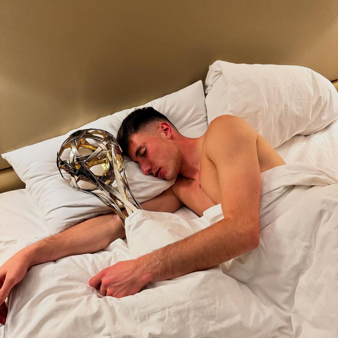 😅 Станислав Агкацев повторил фото Лионеля Месси и других суперзвёзд, сфотографировавшись с трофеем РПЛ в кровати