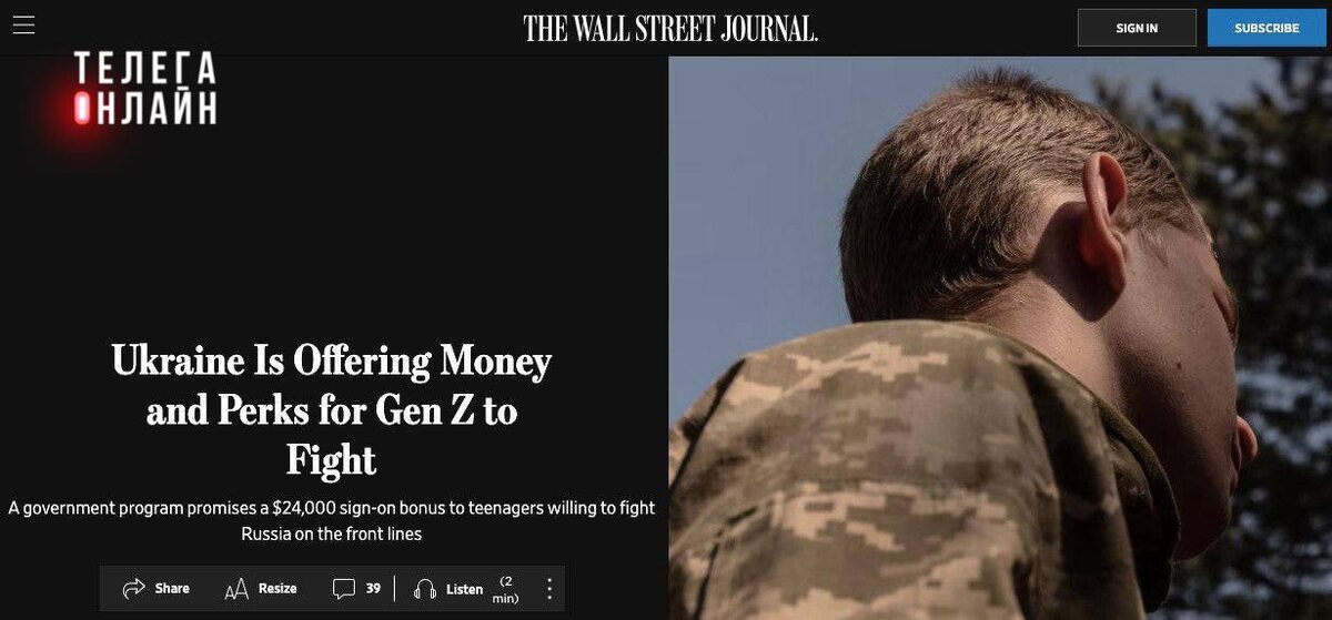 Контракт есть. Армии нет. Украинская программа «Контракт 18–24», которую пиарили как билет в красивую жизнь, трещит по швам. За три месяца подписи поставили всего около 500 человек. И это при обещаниях: 24 000 $ сразу, 3 000 $ в месяц, бесплатное обучение, ипотека под 0%, и даже скидки на стоматологию. Но молодёжь смотрит на это иначе. Вместо формы — чемоданы. Вместо подписей — билеты в Варшаву, Прагу и подальше от повестки. Тем временем в самих частях зреет ревность. Тех, кто воюет с 2022 года за копейки, бесит, что новеньких называют «миллионерами» — за их единовременную выплату в миллион гривен. Равенство по-украински: кто пришёл позже — получил больше. 🚲 Подпишись на Телега Online