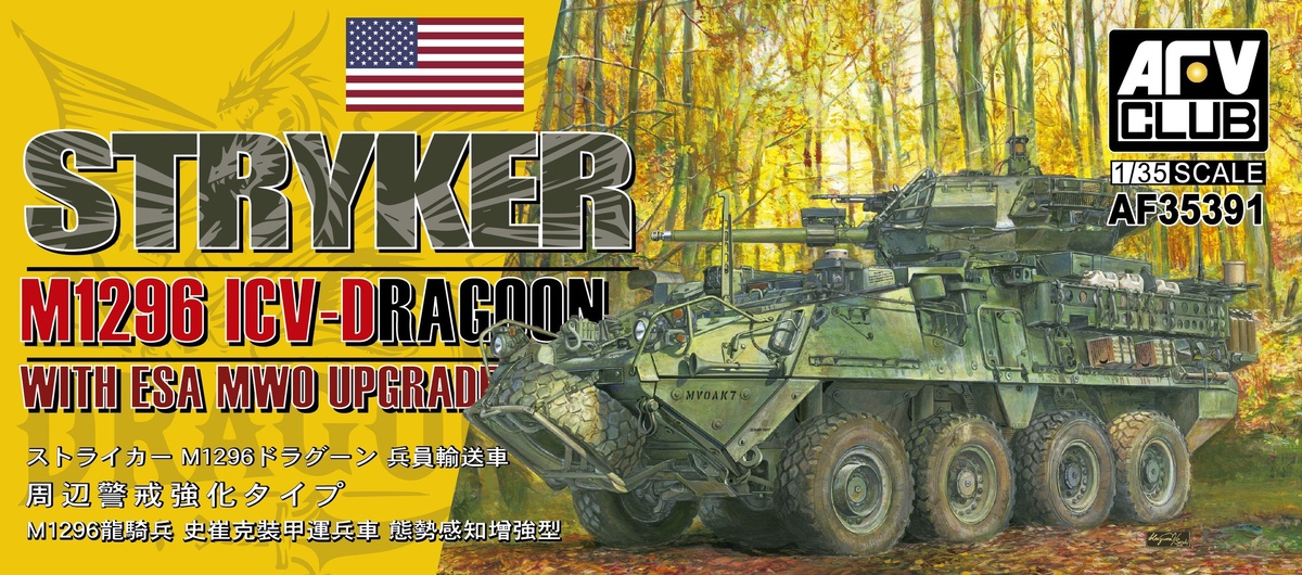 AFV Club с острова Тайвань выпускает новый вариант своей модели "Страйкера" разработки 2007 года в масштабе 1/35: M1296 Stryker CV-Dragoon w/ESA MWO upgrade (каталожный номер AF35391)