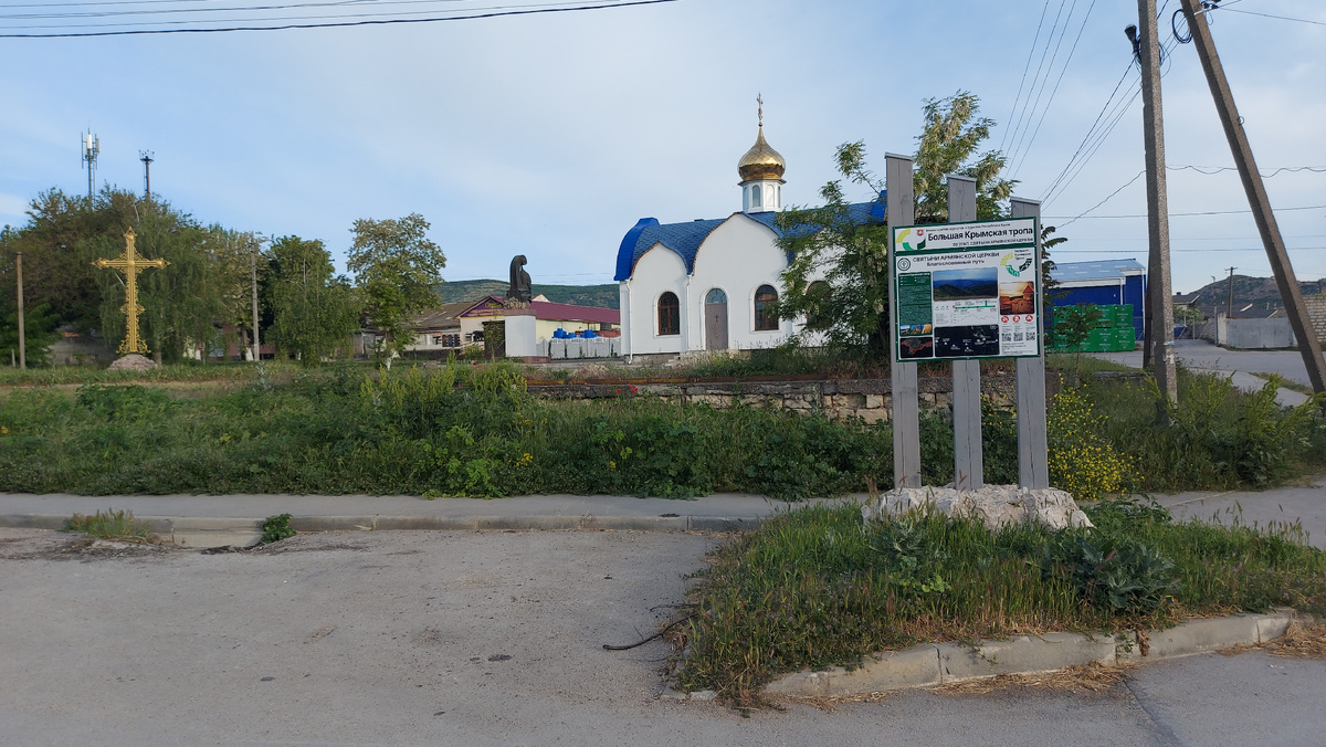 Находите вг.Старый Крым храм Александра Невского,помолитесь(на всякий случай)тут же можете передохнуть в парке и купить продуктов и в путь,указатель №1.