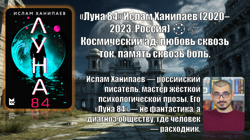 Хочу поделиться впечатлениями о трилогии «Луна 84» Ислама Ханипаева. Это необычная антиутопия — жёсткая, цепкая и без прикрас. Если любите истории, где герои не супергерои, а обычные люди (иногда даже неприятные), и где сюжет бьёт по нервам — вам сюда. Это не просто антиутопия — это удар под дых. Книга, которая не даёт спрятаться за красивыми метафорами, а сталкивает лицом к лицу с вопросом: «Сколько человеческого в нас останется, когда система решит его выжечь?» 2084 год. Хакер Дэниел Стоун — не герой, а циник с острым умом — попадает в «Мункейдж», лунную тюрьму для «неисправимых». Здесь нет права на ошибку: