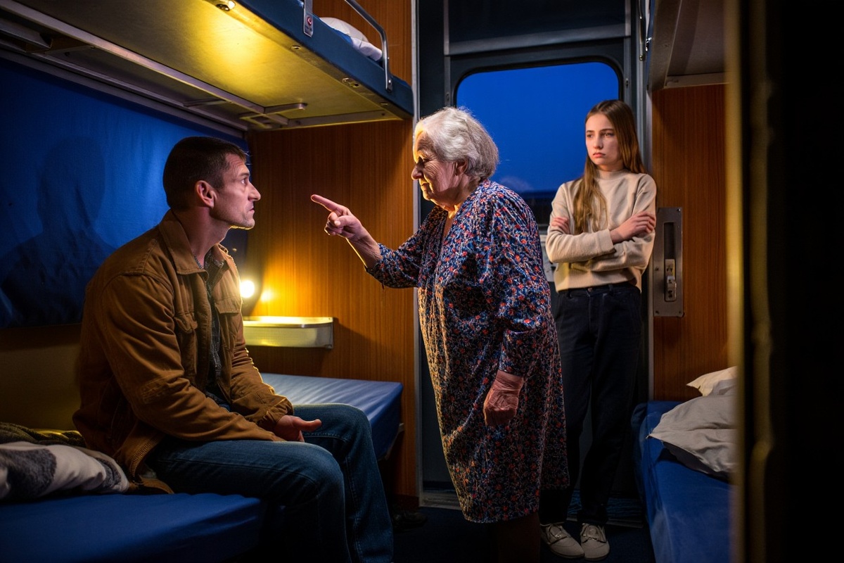 У пассажиров — свои спектакли: выкладывают еду на газетку, шуршат пакетами, качают головой. Проводница Ольга строгая: «Места не перелетают. Меняйтесь с тем, кто ГОНЕЦ». Но никто меняться не хочет. Никто, кроме одной короткостриженой Марии — но у неё сама травма после операции. Виктор холоднеет душой: разве моя усталость — не причина не уступать?.