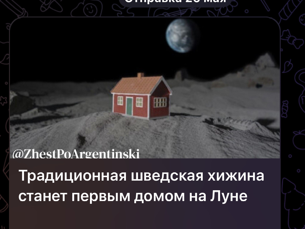 Традиционная шведская хижина станет первым домом на Луне 5 июня в 16:24 по аргентинскому времени традиционная шведская хижина красного цвета станет первым домом на Луне. Она будет доставлена на борту японского лунного модуля Resilience. Это событие открывает новую главу в истории космических исследований и архитектуры. #космос #Луна #архитектура #новости #инновации
