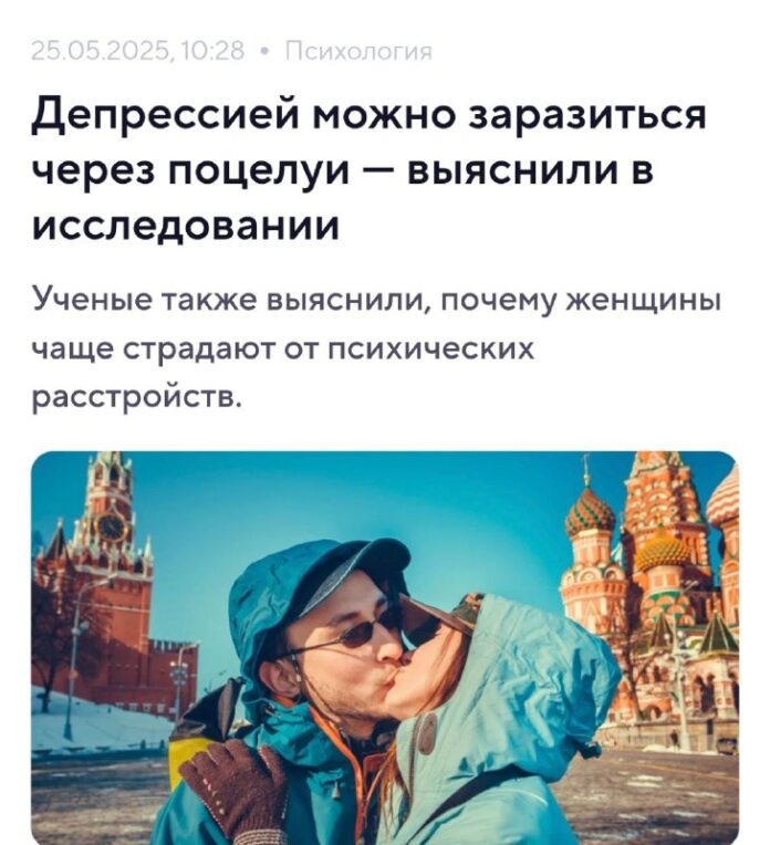 А вы знали, мои дорогие читатели, что фраза «любовь витает в воздухе» может иметь куда более прозаичное и, осмелюсь сказать, тревожное продолжение? 🔬 Оказывается, вместе с амурными флюидами в этом самом воздухе могут преспокойно циркулировать… молекулы чужой депрессии! Да-да, не ослышались. Ученые, эти неутомимые исследователи всего и вся (интересно, чем они руководствовались, когда решили это проверить? Личным опытом?), на базе, ни много ни мало, 1.740 семей вывели сенсационную формулу: хандра передается воздушно-капельным, контактно-бытовым и, страшно сказать, губо-поцелуйным путем! Так что, если ваша вторая половинка внезапно начала цитировать Шопенгауэра за завтраком или смотреть на мир исключительно в серых тонах, возможно, это не осенняя хандра, а вы просто… надышались. Или нацеловались. 😥