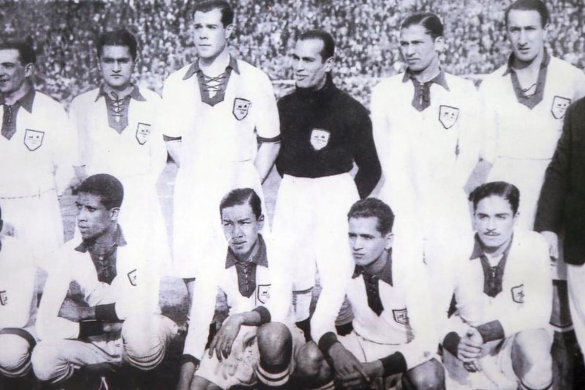 В предыдущей статье о сборной Румынии это фото уже подробно описывали. Слева в фуражке стоит один из лайнсменов — бельгиец Джон Лангенус. Из-за него выглядывает как раз чилийский массажист Флорес в перуанской кофте.